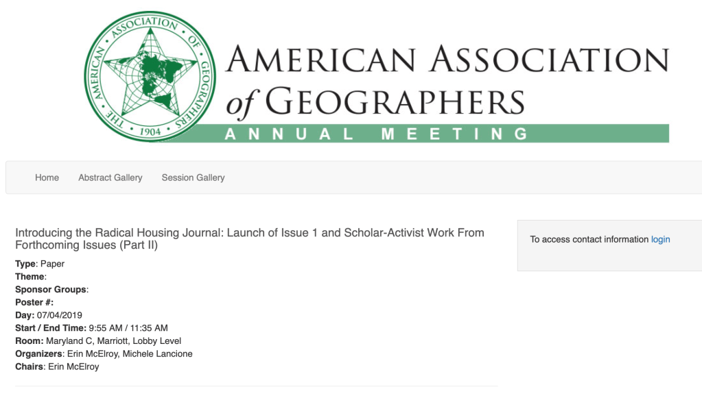 This paper is based on my article for the forthcoming first issue of Radical Housing Journal, which will be launched at the 2019 AAG. It is included in the session, “Introducing the Radical Housing Journal: Launch of Issue 1 and Scholar-Activist Work From Forthcoming Issues (Part II)”, organised by Erin McElroy and Michele Lancione, and featuring AbdouMaliq Simone as discussant.